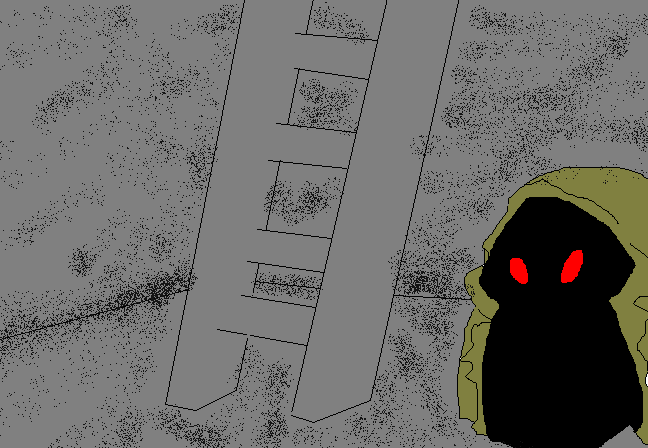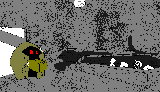 ... that is not a table... even though light i bring, it is still dark. The grubbins smell is everywhere, also there is lots of people pieces. There is not much to be seeing of the front other then muck on walls and muck on floor. If grubbins is this, what is in the box? I am not so shy to be seeing, but i never liked the sight of people muck. Though i don't like the people muck i am curious to look around, i cannot tell if there is much here. What about you bolcero?