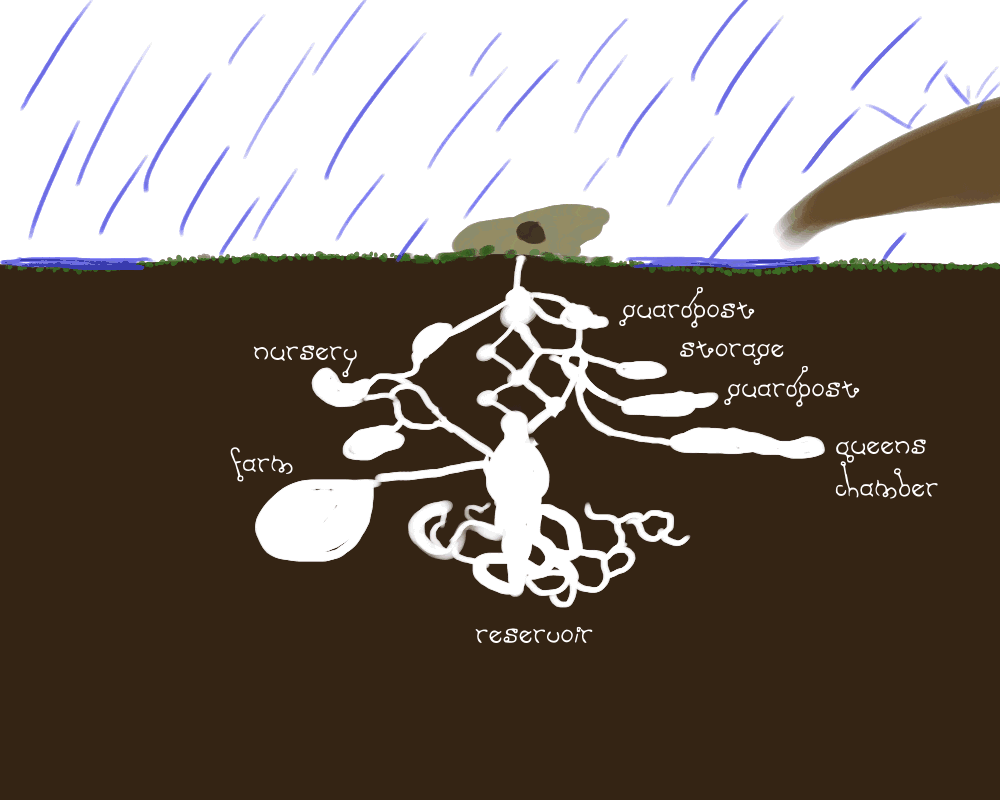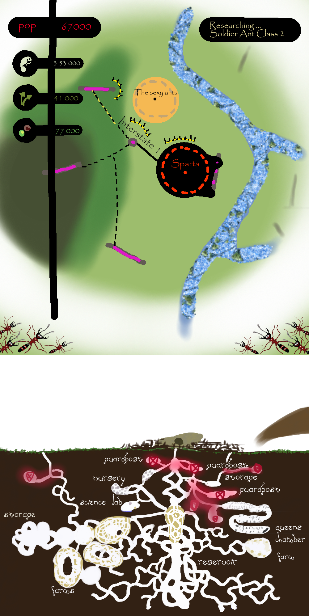 >>Start digging an assault tunnel starting near, but not connected to the interstate crossroads. Quietly dig the tunnel towards the sexy ant underground nest, but try not >>to breach it yet if possible. When the main attack starts our most elite ants will rush in >>to assassinate and saboutage.