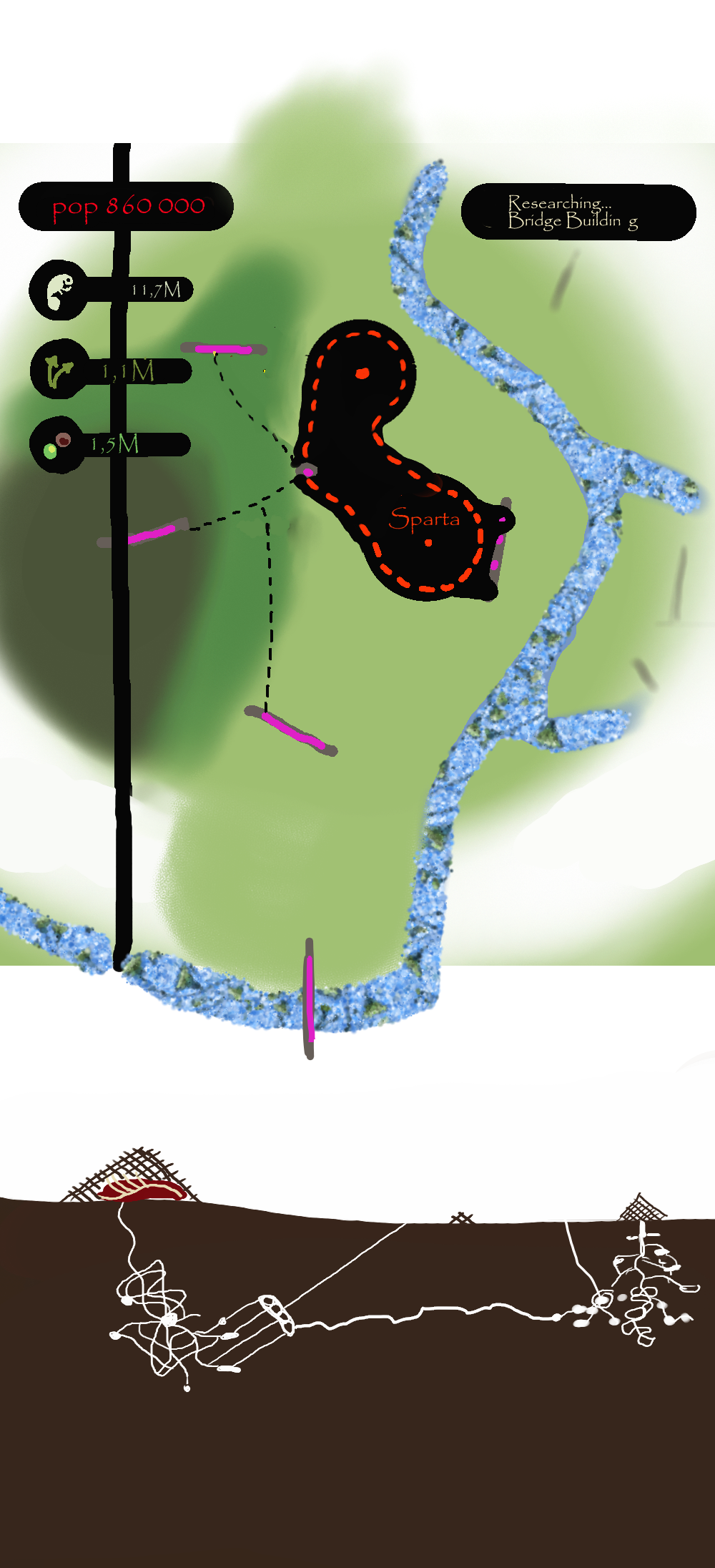 The great war is knocking the door. There are now more class 1 soldiers than there are class 1 and class 2 workers combined. A food shortage is imminent. The current food supply is negative by roughly 10 000 food units, that means less than -10% feed factor and causes no penalties nor fatalities, but is a gentle knock of energy running out of the colony. A food source at the Interstate 1 is running out of substance.