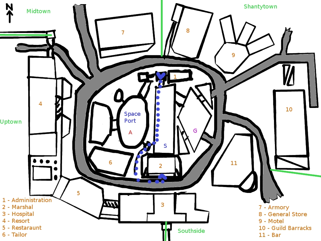 Chet: Hello! I'm Chet 'The Jet' Hardchin, I run Space Bound Deliveries. I'm here for vacation and I don't mean for any trouble. And since I don't want any troubles can you tell me of any places or people I should avoid? Or any Local Ordinance that I need to observe?