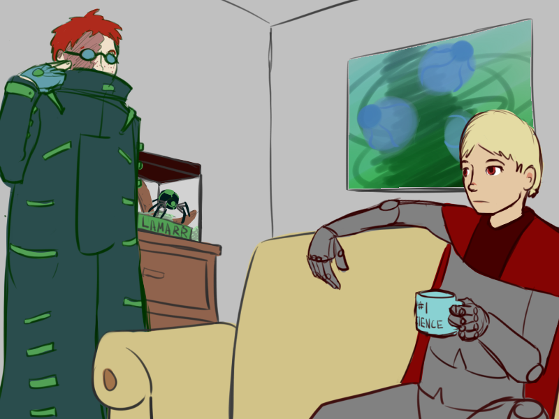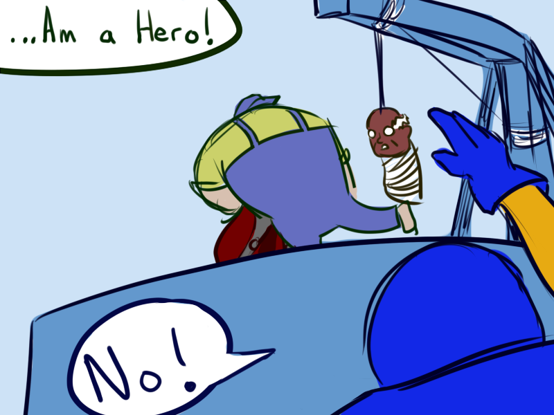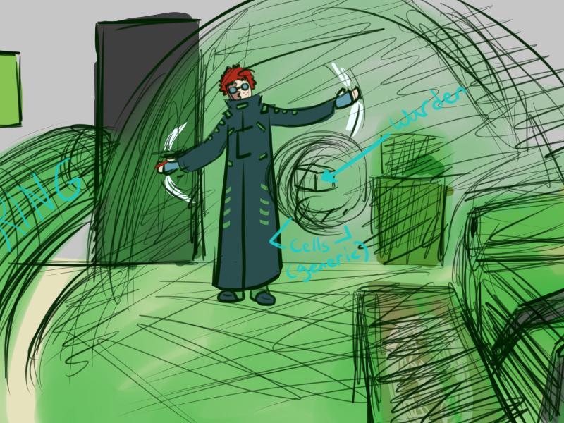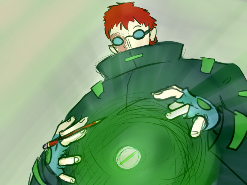 We're RIGHT in the middle of our villainy, here. We can look into Green's condition later! I don't mind the villainous brainwashing. Buy a 2fx heal/mind-control circlet (not 'zombie puppet', think 'replace EDF with Blacwick in Green's esteem'), make him wear red and black. Maybe stick him in an Obsidian Knight-esque costume and miniboss him. It could be a whole big thing, and meshes nicely with our supposed curse on Monkey Wrench.