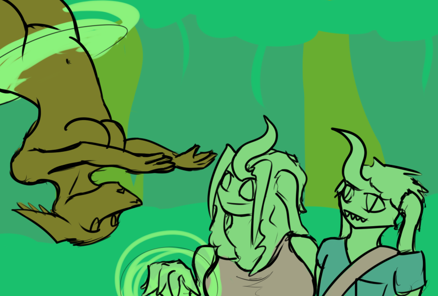 Oh, and Lel, was it? To answer your previous question, the vines weren't "playing" with her, per se...think of them like catheters. If you're that kind of bored, open your perceptions to the forest around you. I have that theory that the plant life is absorbing the psychonium in order to communicate in a hive mind. Every tree, every bush, every liana, is a brain cell. Think of a plant-based version of the undermind, and you're standing in the middle of it.