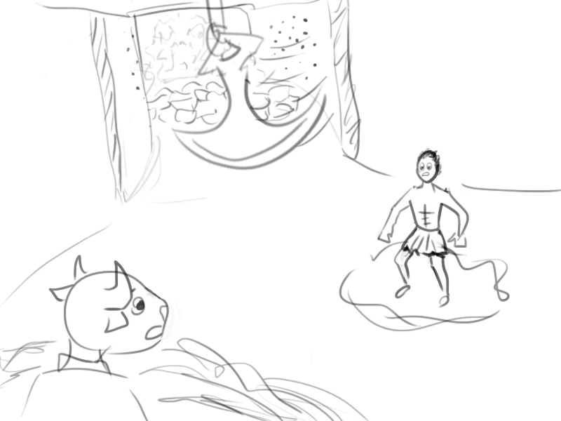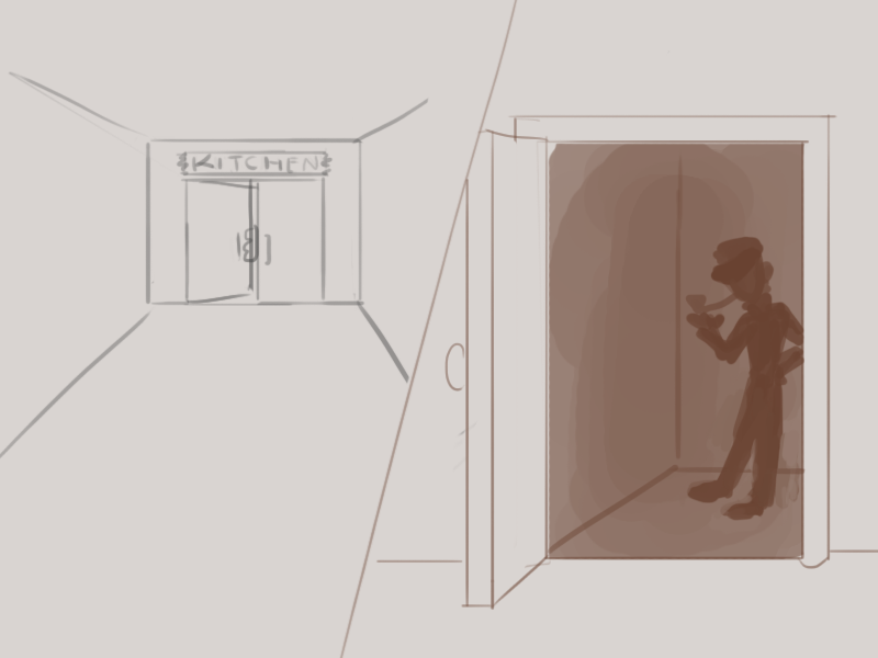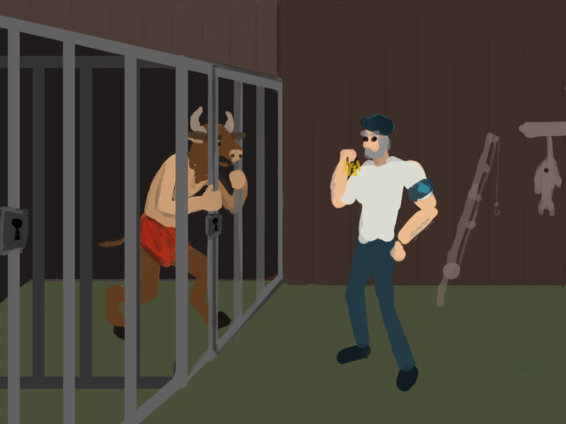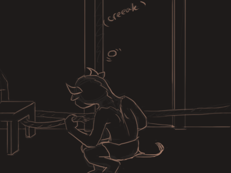 "Well come here Quigley, I've got something to show you." Silent Jim closes the door after the chef lumbers past. He turns and reveals a big hairy monkey tail before quickly hiding it back in his pants. He's a Simian??