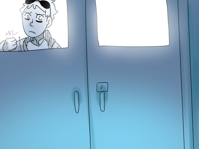 Of course, when I finally get to the swimming pool, the door is locked. What an enormous waste of time. From the door's window, I can see the pool is pretty much devoid of all life, and the floor looks kinda dry. Looks like no one's been here for a while.