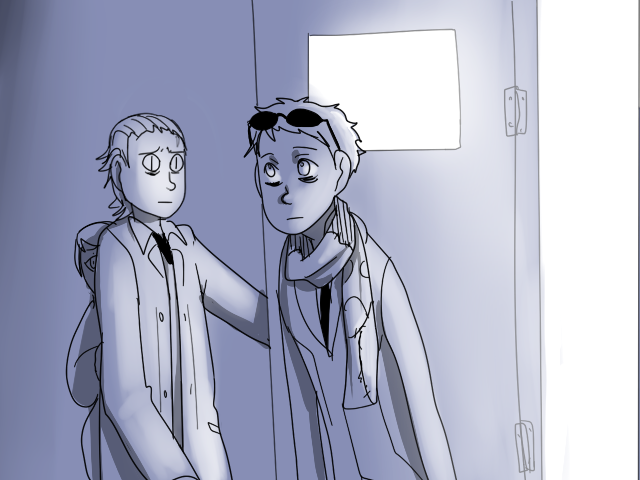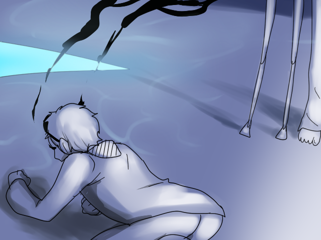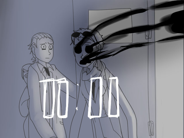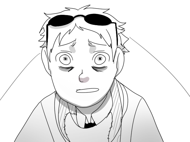"Uhm?" This is starting to feel less like a student crackdown and more like Battle Royale on an island of cannibal natives. And these guys are pretty terrifying by themselves. The vomiting kid starts crying and the knife kid puts down his weapons and gives him a hug. I have never been so uncomfortable in my entire life. I want to anywhere else but this room, right now.