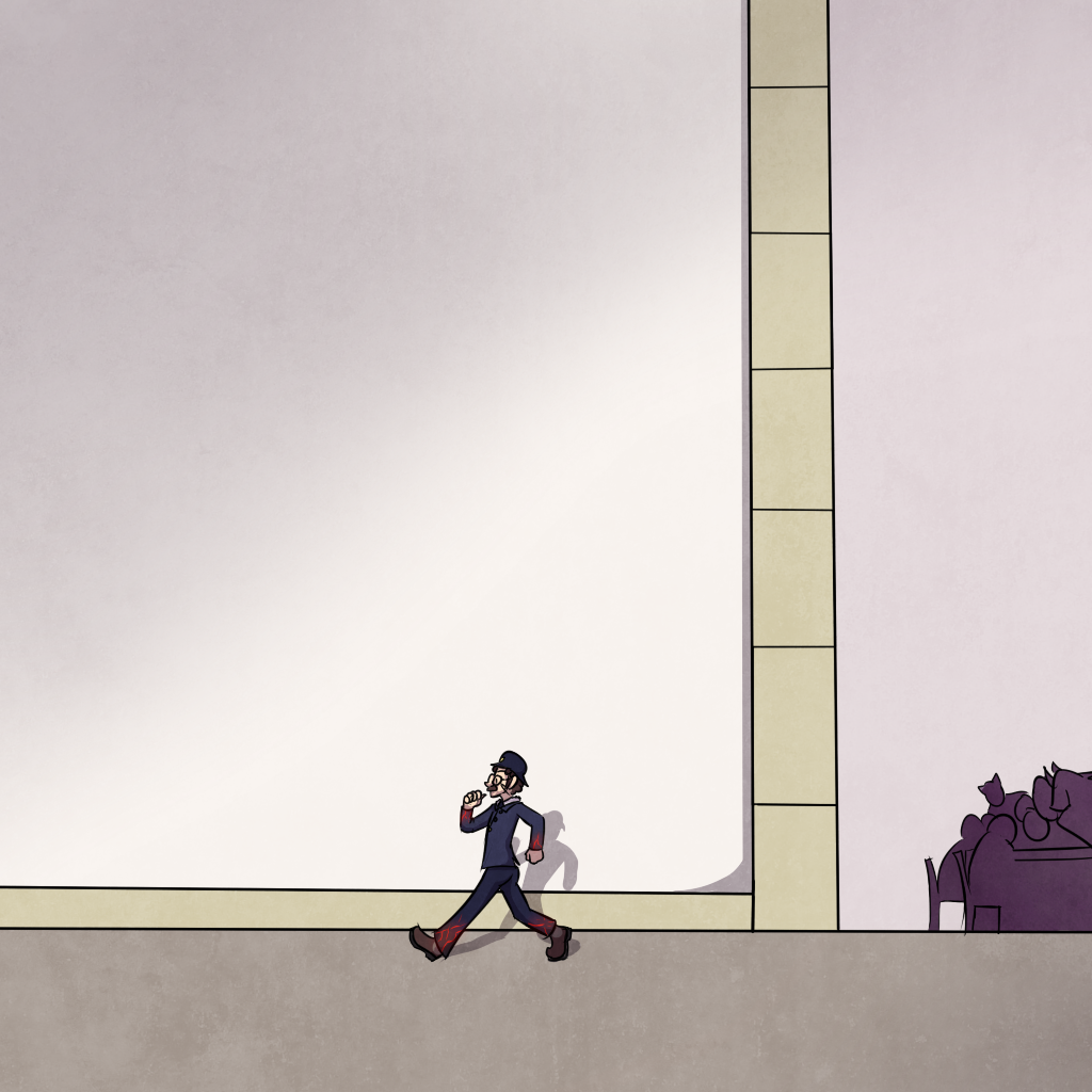 You might still be able to get out of here, but you'll have to be lucky. Sidle behind the woman in the floral print skirt so the clerk can't see you out of the corner of his eye, turn, and quickly walk out of here. If there's a shout to stop, run for it. If you can, use your magic to throw up a bright flash right behind and above you to blind them. Once you're outside, fire-jump onto the roof of a nearby building and keep jumping until the station is out of sight.