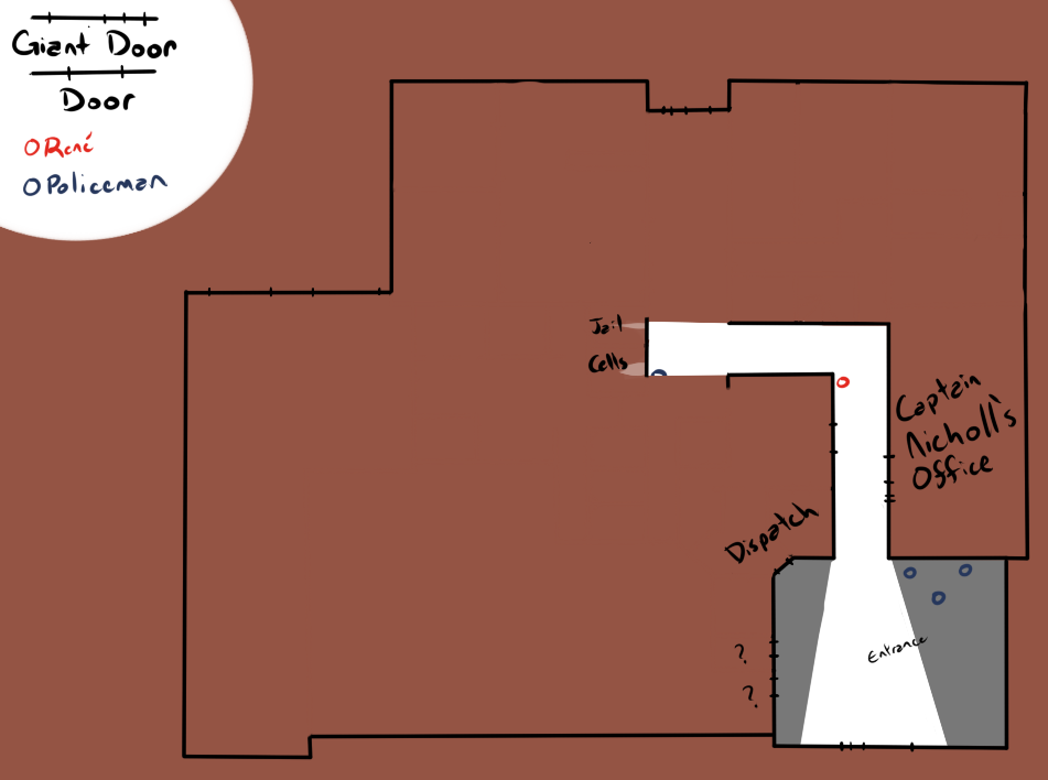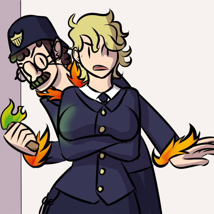 ...What in the...? Why the hell are you in here?! Did you get hit in the head and have taken complete leave of your senses?! Even if, by some god damn miracle you convince these coppers to bring Ellen and you out to Chrys, it'll be clapped in irons and as a detour on a one-way ticket back east! And, in the much, much more likely case you don't convince them, you'll be bound up in a cell neighboring Ellen at the point Chrys can't hold back any more. She'll make a rampaging bee-line through the city straight to the police station, and then it's anybody's guess whether she breaks you out before the burning building falls down and crushes you!
