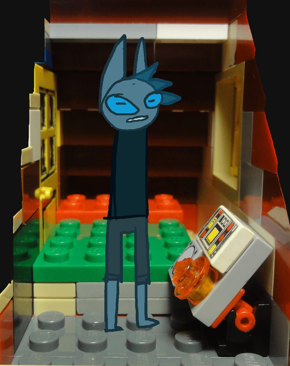 Well, a pseudo-godlike being has repurposed some of its race's toys for children into a sort of domicile for you. Said being took a picture of the domicile, drew you into it, and uploaded the whole thing onto the Internet as an interactive comic sort of thing. Other beings of this race, also known as us, are speaking to you. We will ask you for information, give you advice and nonsensical command, and possibly bond with you in a strange way as we seek entertainment.