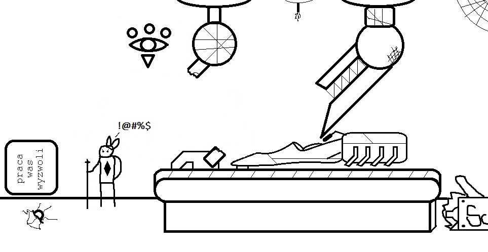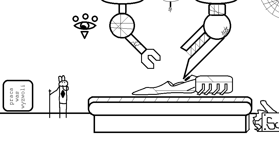 You chuck a piece of scrap metal at the closest arm, the cheap plastic casing easily denting from the impact. You chuckle to yourself a bit as you putz with the signaller under the conveyer belt, calling for impact repair technicians. You think. Man you have no clue how to operate this damn thing. You are enjoying the rebellious streak, however.