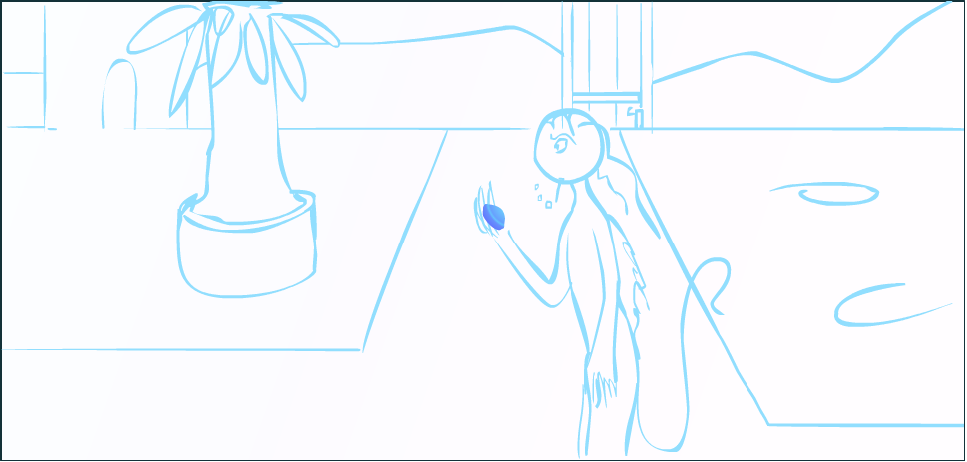 Mazra grins, pelting off on cool pavement at full speeds, a small wake forming behind him as he moves down some rough-hewn steps towards what looks like a serene, windswept beach.