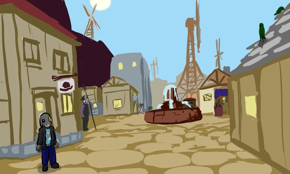 We get to the place, and I say goodbye. Jirri is here, generally doing kid stuff while the some goblins work the sawmill behind the place. I give her the parrot, why are there so many of them here?