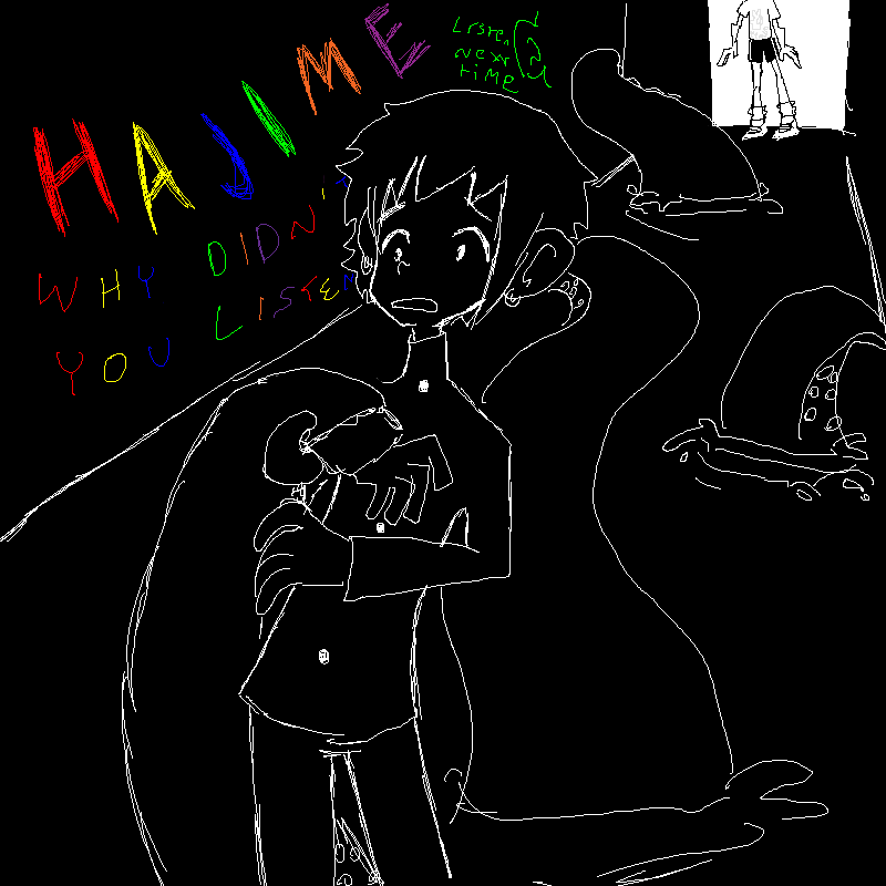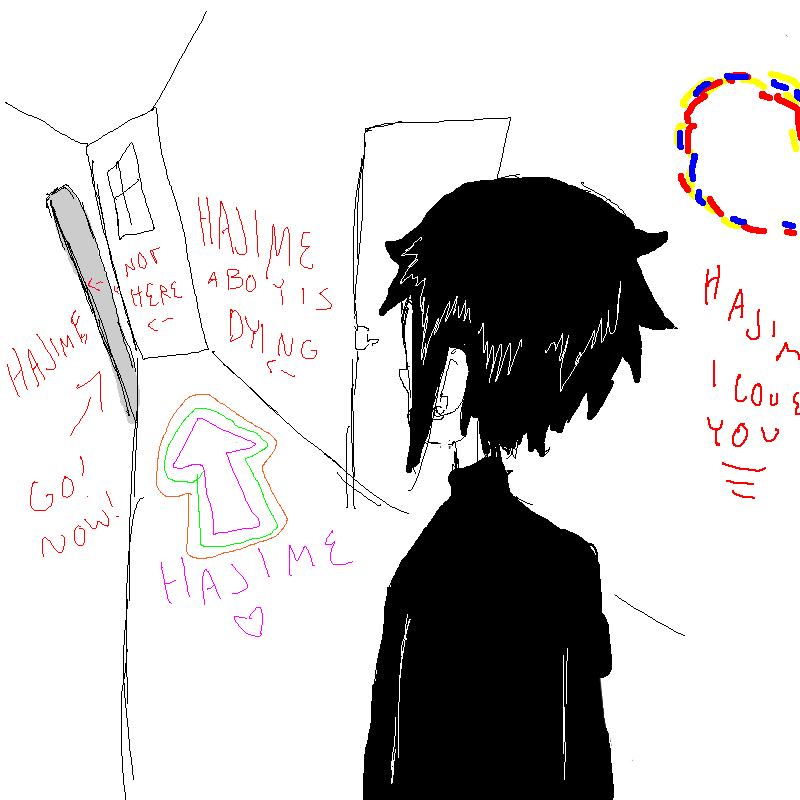 Primary: Ew! No, he is too gross, we have to find a nice arm for Hajime! Alright Hajime we'll be back soon, ah, Hajime?