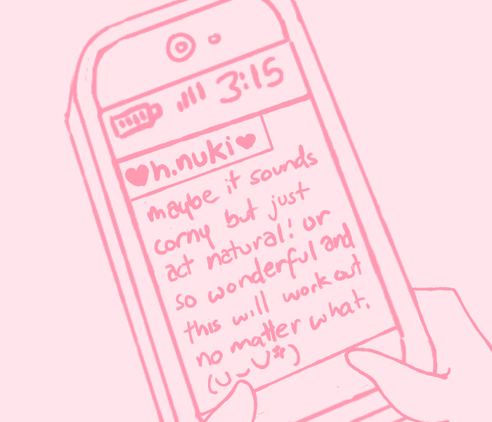 "Got it! From what you told me, we won't need it, though." She pauses for a second, then I hear her giggling. "Is it okay if I tell the other people on the forum what you're doing today? I'm sure they'll all be excited to hear about your first date ..."