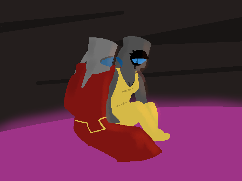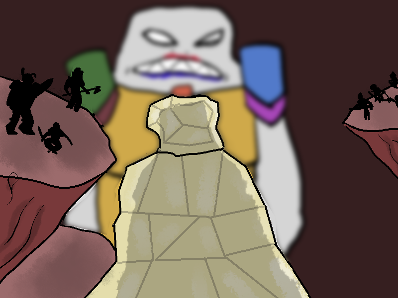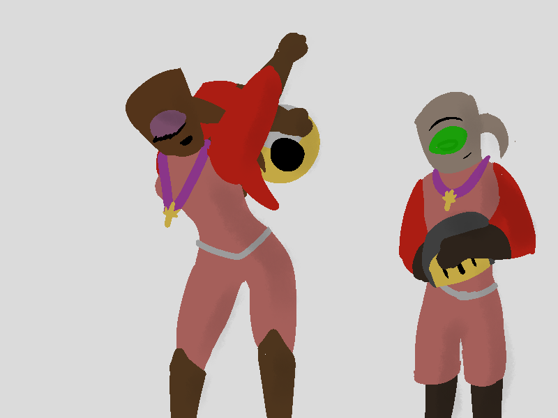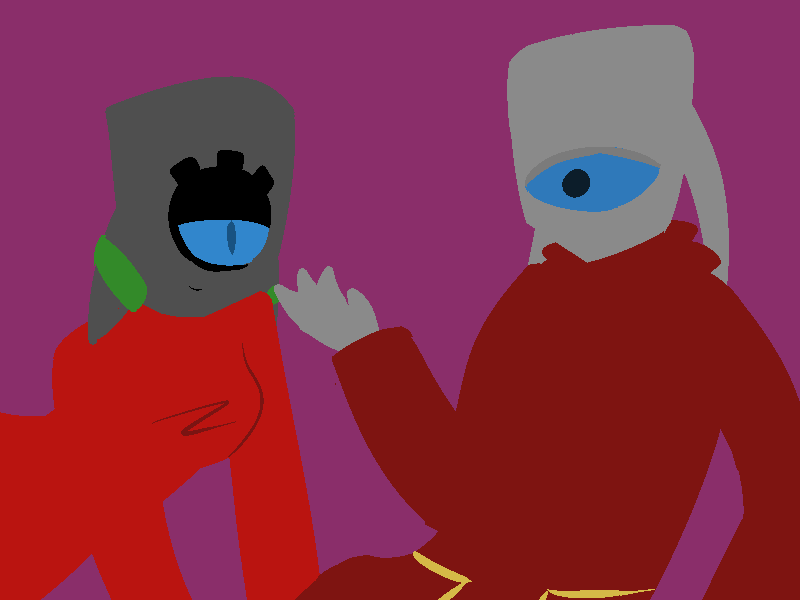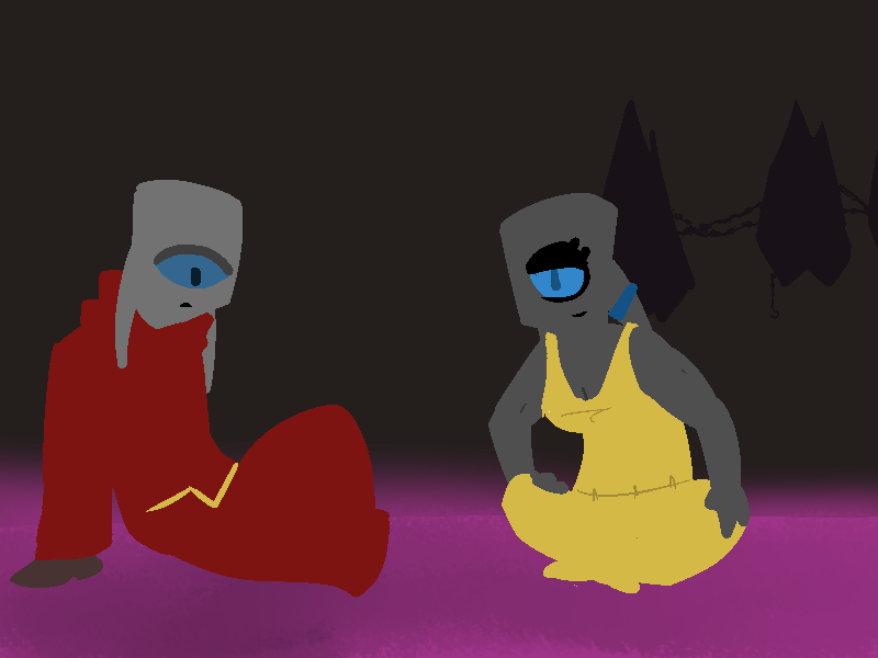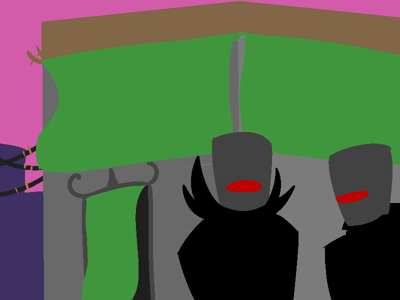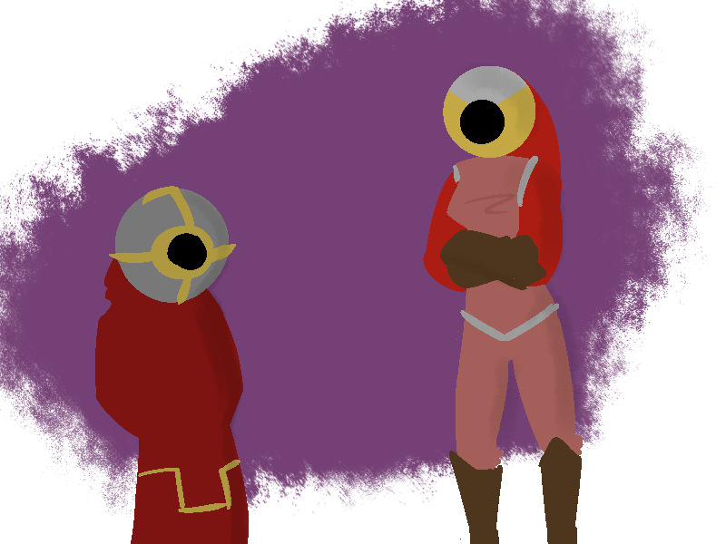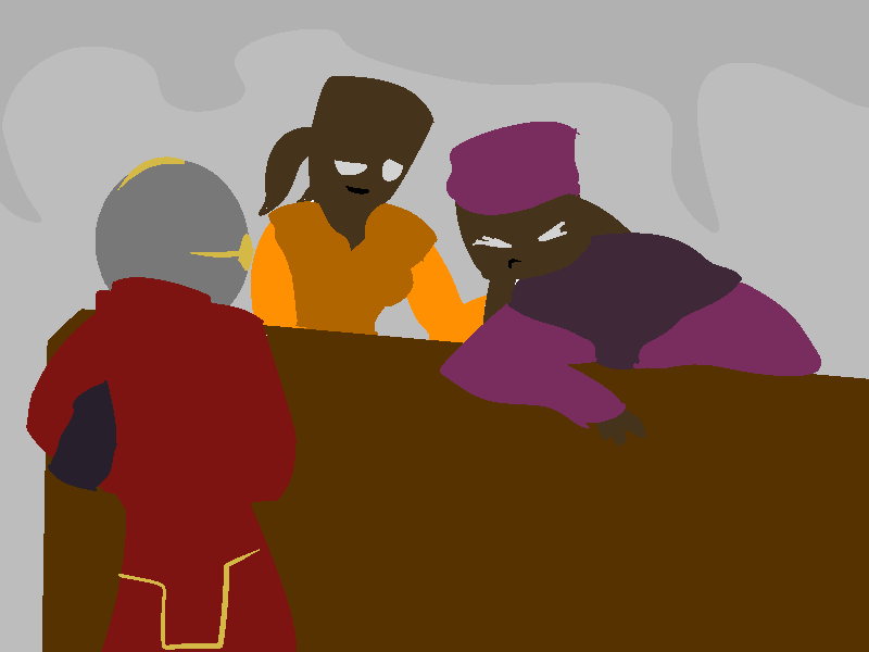 "Now boys, there's no need to 'sir' me or anything," says Euro. "Fortunately, I'm a megalomaniac, so you're both okay." He chuckles a little as Dahlia pulls a broadsword nearly as tall as she is out of thin air and then shimmers into invisibility.