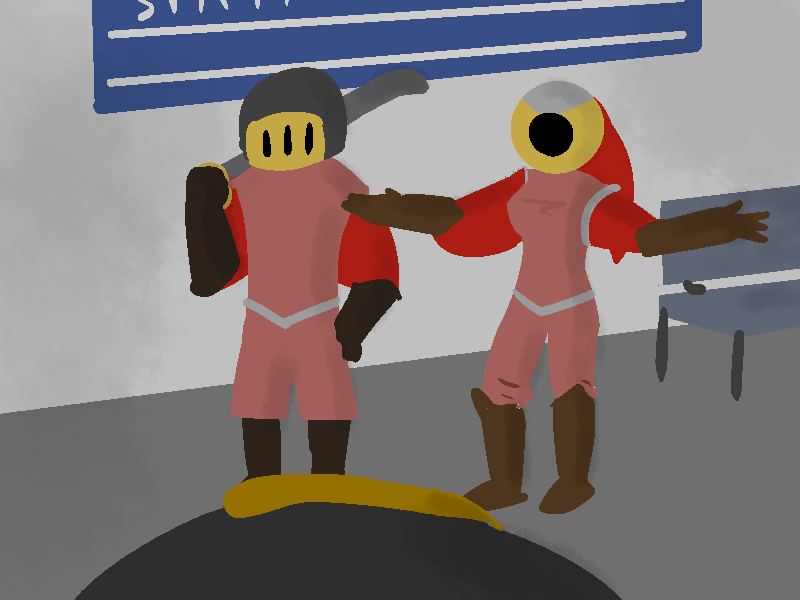 "Hello, Euro, sir," says Pyramus, as a dishearteningly large man sits down behind them as inconspicuously as possible.