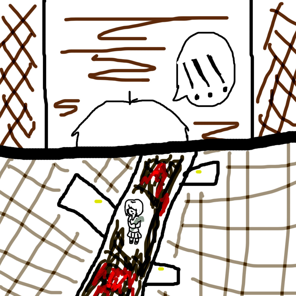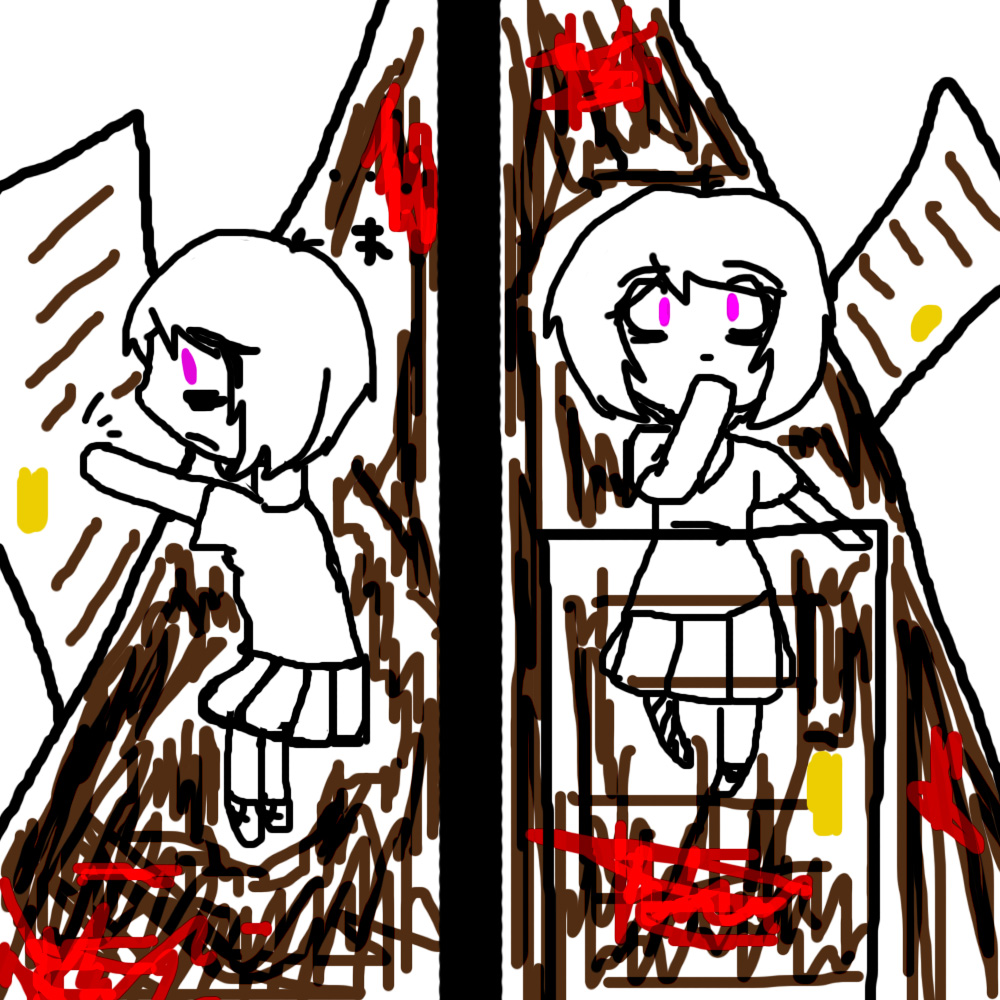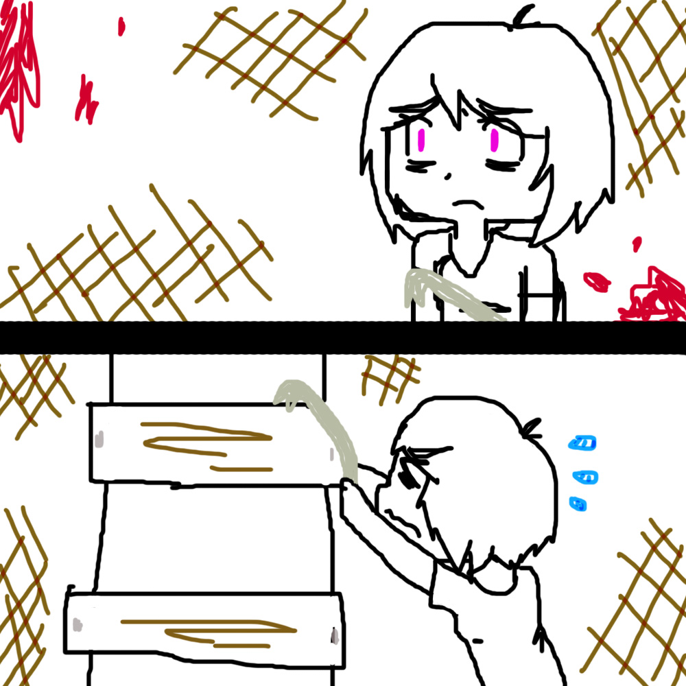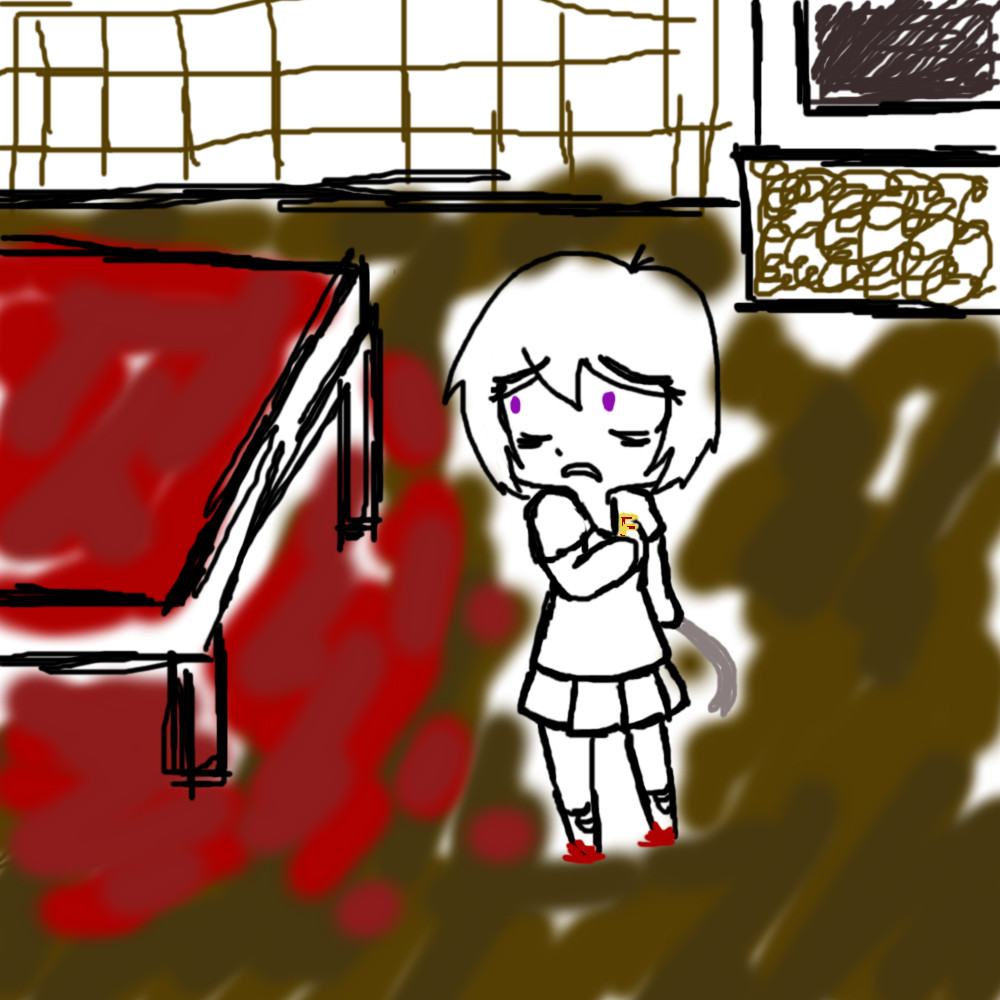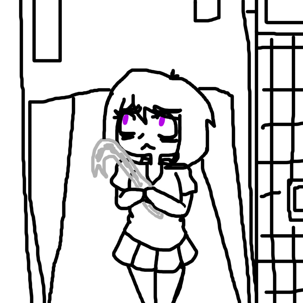 "Hello... Are you... Safe?" Violet asks as she peeked her head from the door to get a better look.