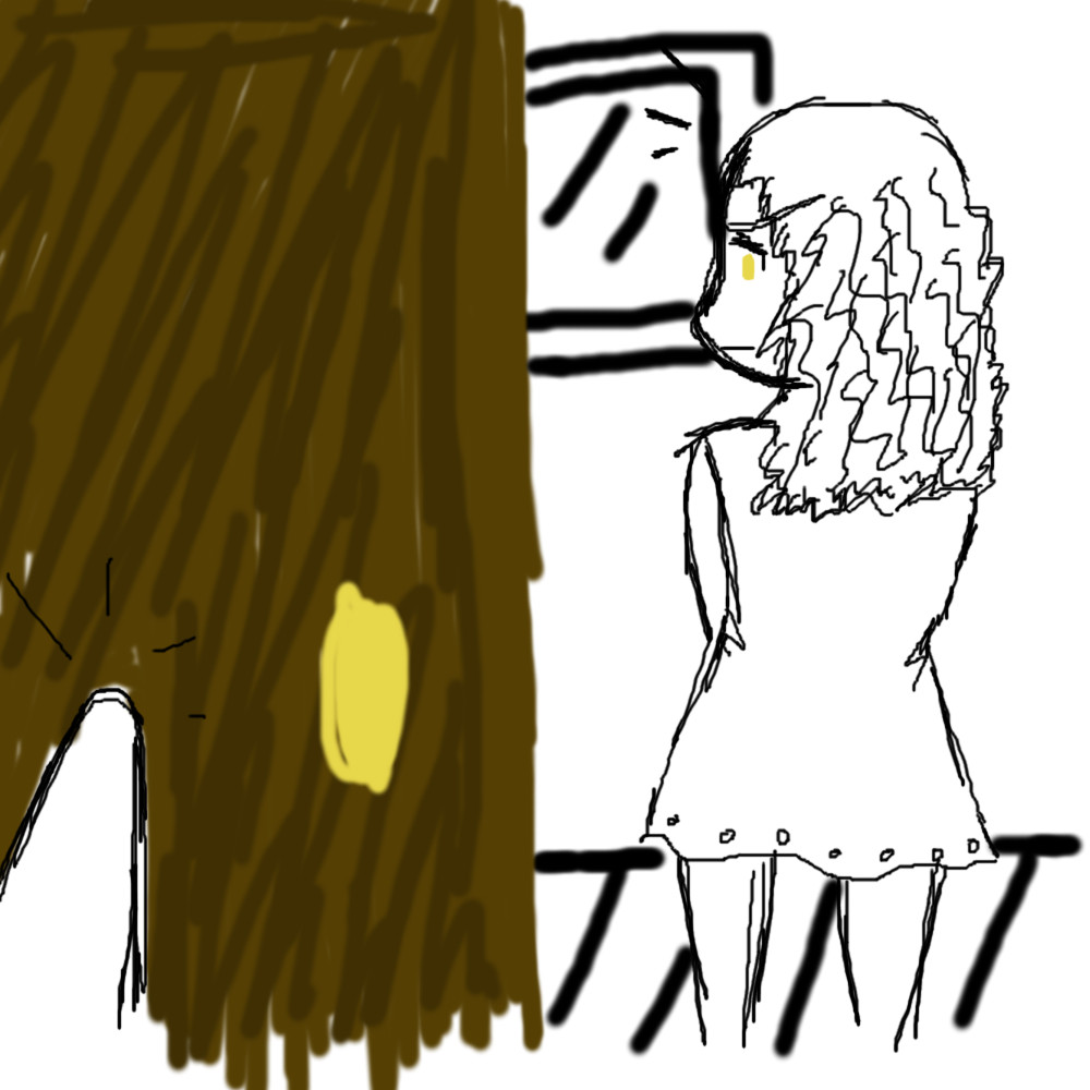 "H-hello...?" The small voice asks as the girl turned her head over to the door to see if she can see what was beyond.