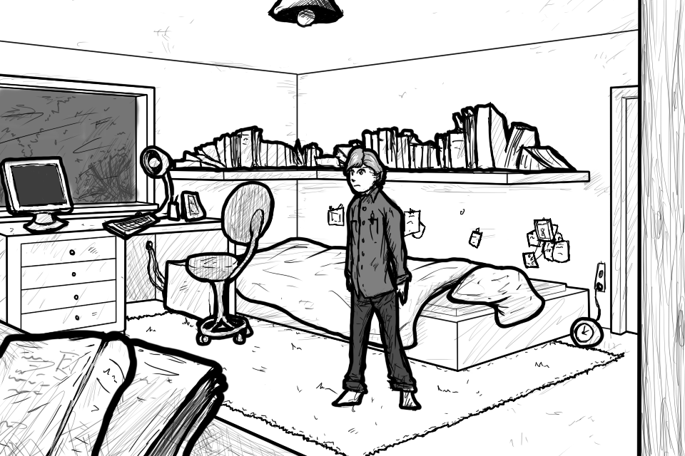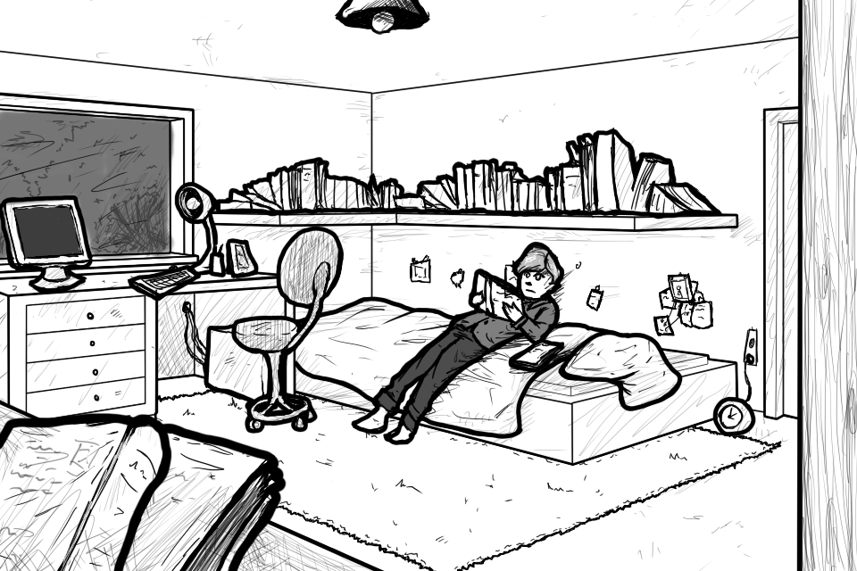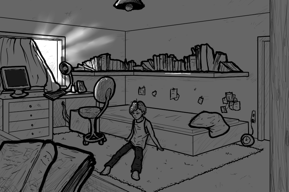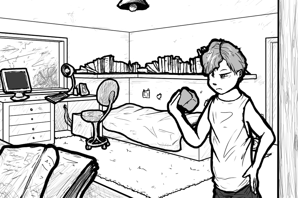 I take the tape out of his shaking hands "You should'nt worry too much... You don't have to go, you know. You could stay here. Maybe a meteor hits my house or something..."