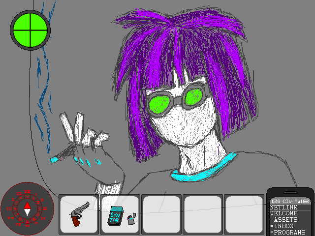 Vivian asks in a slightly patronizing tone, “What can I do for you, old buddy?” You tell her to cut the crap and inform you why you suddenly have an illegal program on your phone with your name written all over it. “Oh, that old thing? I wouldn't worry about that. I knocked all the bugs out in the last version. Some poor fool got nabbed using the thing, but these kinds of sacrifices must be made in the name of science, no?” Her condescending, holier-than-thou sort of attitude always did get on your nerves. “But that isn't really why you're here now, is it? You need a favor that only someone with my expertise can provide. What is it, did you finally grow some balls and decide to go for the big leagues, like a virtual bank robbery? Or maybe you wanted something more mundane, like dirt on an old ex-lover?” You tell her it's nothing like that, you just need an untraceable file transfer. “How mundane of you, but I guess that is to be expected from someone so straight-and-narrow as yourself. What kind of files are we talking here?”
