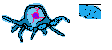The Nakku develop a basic nucleus. This combined with a simple nervous structure were originally developed as the Nakku required more control over its lengthening appendages. A side effect of this development has been that Nakku seem to be able to transmit information through their thin, jelly-like membrane, even to other Nakku. Nakku are often seen in clumps or small floating colonies. With relatively increased intelligence these colonies prove to be formidable predators despite their limited mobility.