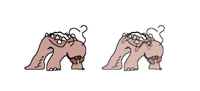 The Paw pesh line has now diverged into two separate forms, the Gripping pesh, which as stated has opossible thumbs that greatly aid in climbing and the Burrowing pesh wich has better adapted itself to life both within Jir palm trunks and beneath them, with a sturdy exoskeleton and harp, digging clas/horns.