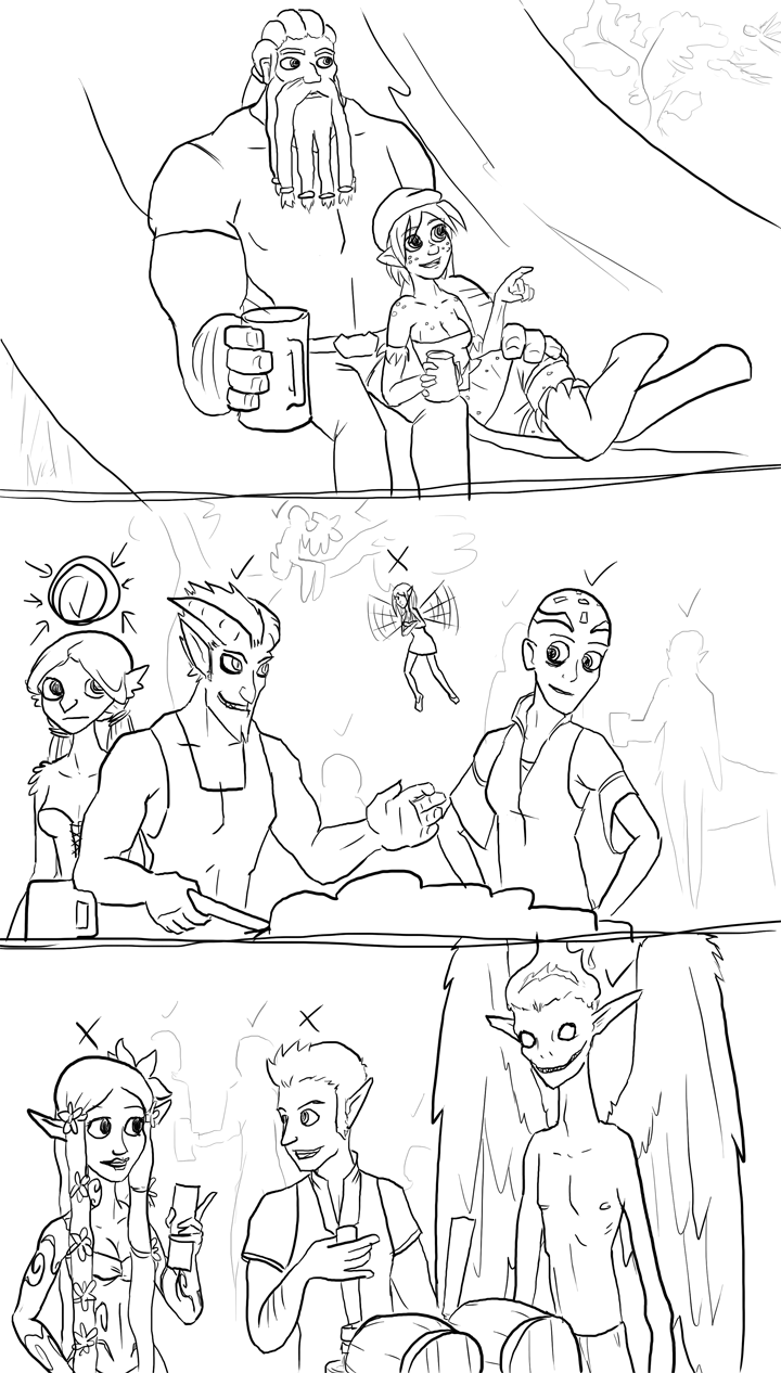 "Well, they're not all my friends, more like friendly acquaintances. You could not eat my friendly acquaintances if you're not feeling that hungry, I'm just saying who I wouldn't be bothered if you do. Except Jen, eat her for sure," she says a little too loudly, taking another swig from her mug of Teak's ale.