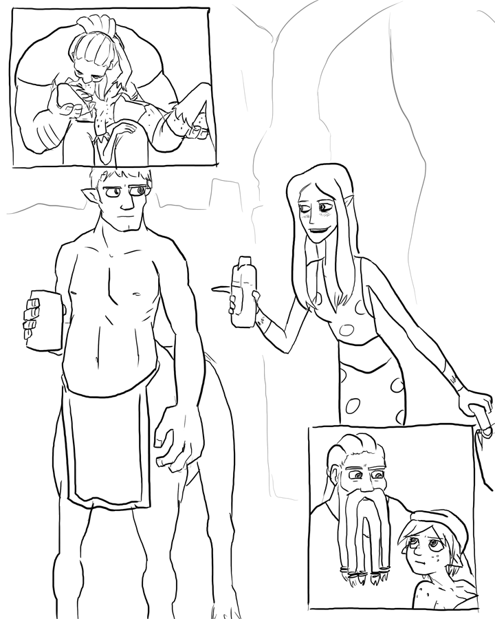 She swallows the drink and continues, quieter, "I mean, some of them aren't really even friendly acquaintances. This isn't really like, my crowd. It's more Teak's, and it's at Lothar's place. I mean, you can be friends with whoever you want, but I feel like that Lothar guy is like..." she sets her mug down on the root and holds her hand like she's squeezing an invisible ball, "like all the douchey guy stereotypes rolled up into one horny dude."
