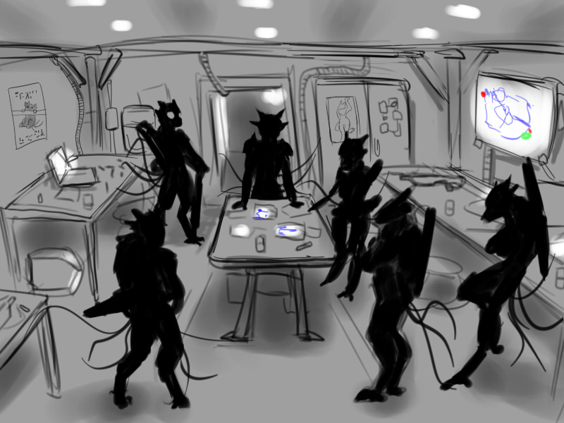 "Also, isn't that carrier in a pitched battle right now?" asks Kaselir, cutting over the channel. "You're gonna fly past all their excited gunners, through active Scellor air defenses, which are still putting up missiles, by the way, and try to land through their shield? Wait, check that. You're gonna have your critter-in-a-bag fly you there. Now, if you take out that force field, I can bring out Syel and hunt their heavy assets, one by one."