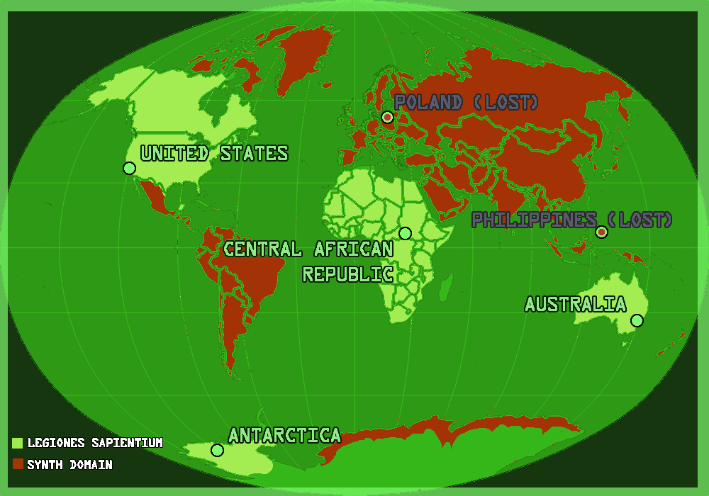 Until recently, our priority was to exist separately from the Sapientium, as they would not engage us in combat provided we did not enter their domain. But when a series of carpet bombings by the Sapes obliterated a coordination center on the Antarctic continent, we were forced to shift our containment paradigm.