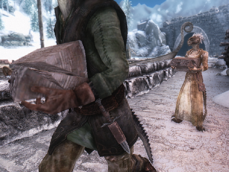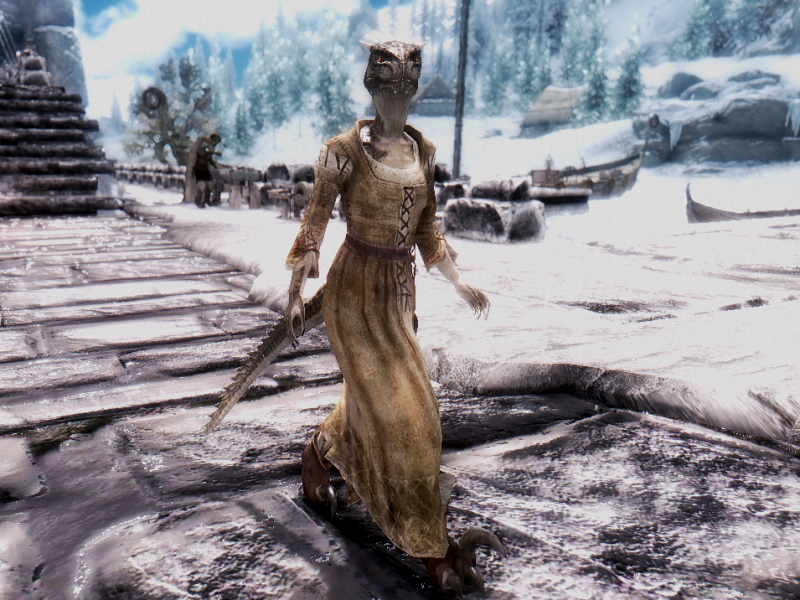 Stormcloaks. That's a name you've heard quite a few times in reference to the land of Skyrim. Even far away in Black Marsh, you had heard tales of a civil war in the land. The Stormcloaks had taken control of nearly half the kingdom in an attempt to separate Skyrim from the Empire of Tamriel. It had not seemed to be an excessively bloody war, so it was not enough to deter you from following your Voice, which let you to Windhelm.
