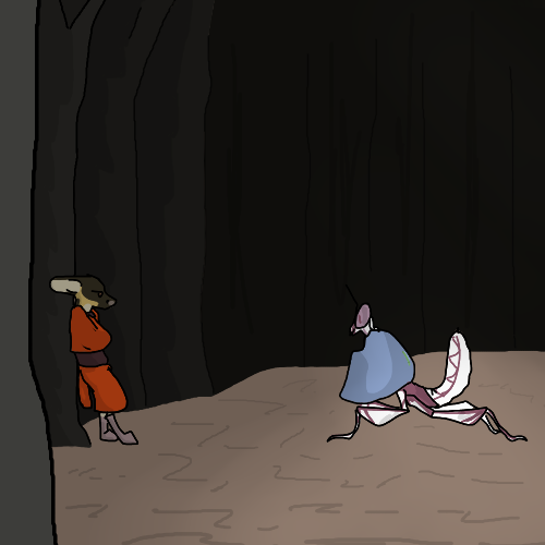 I ask him if it’s possible for a dreambug to be entering my dreams a lot and slowly implanting thoughts in me, and teaching me the dreambug language. He says it is, but it’s really unethical. He says he learned the tombdog language through dreaming. He asks me to try to talk to him in the dreambug language and I do for a bit, and he says my mouth can’t do the noises well, but it’s a good effort and it’s nice to hear his own language again.