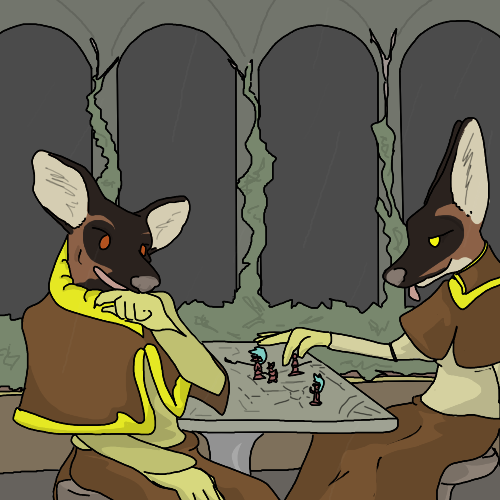 Looking at the dim gray sky, it’s sometime in the afternoon. I’m kind of hungry. I guess I could see if McTrinkets is free for having some food, although the plan was more that I’d spend a whole day with her—but maybe spending a day and a half day extra is nice too. Or I could maybe talk to Iaxio about hanging out—we haven’t really had any friendship time in basically forever. I could check out House Doxedn and see what they’re up to? I dunno.