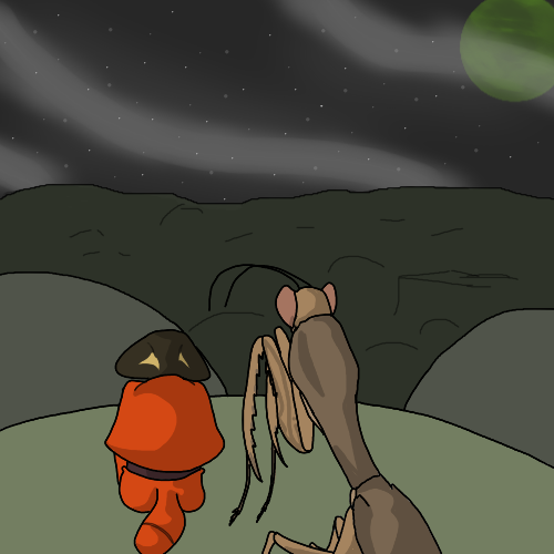 He says the Geofahn dreambug can keep other dreambugs out of my dreams if he’s good enough, which apparently he is, but he has to set up an actual barrier that other dreambugs get stopped at. He says the constellation I saw was just an artifact of the dreambug using his power on me. I tell him what the Geofahn bug did with the fake Maexiks tricks, and the nightmares, and he tells me the Geofahn bug is probably pretty good at dreaming. He also says the Geofahn bug sounds rather immoral.