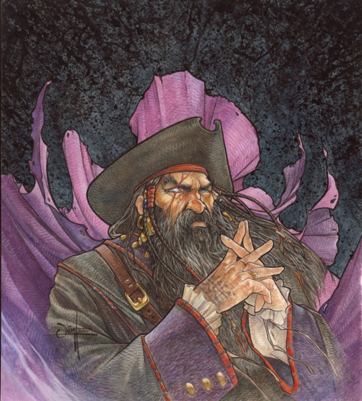 Armed with an artifact that apparently is a sign of favor from Tiordras, a cutlass that apparently allows him to wield the full fury of the oceans, this brown-bearded madman is an admiral of his own fleet, binding the other pirate lords under his flag with abundant loot and a total disregard for the law. His current whereabouts are unknown, but Ratham's flagship is a massive, forty-cannon ship-of-the-line, the Black Razor. Considering that blackpowder weaponry is able to penetrate magical barriers easily, it is a terror of the seas by any respect.