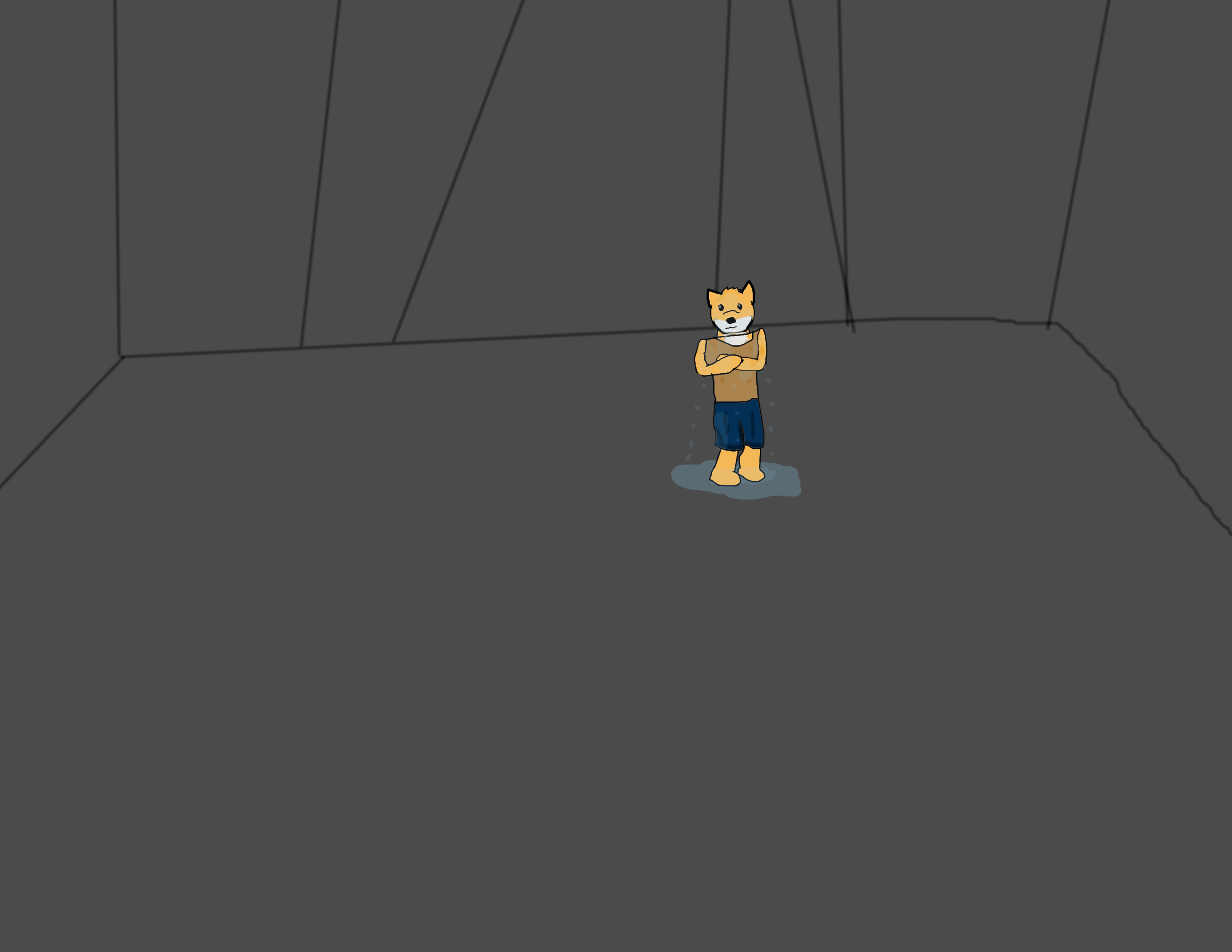 "Well, there seems to be lights down that path. Can we find somewhere to dry? I don't like being wet." He says.