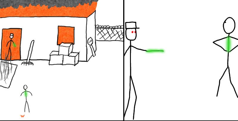 Joshua's retreat was interrupted by an immense pressure around his chest, knocking the wind out of him and stopping him in his tracks. Slowly his body lifted off the ground and he rotated to face the man in the doorway. The man's unearthly gaze cut right through him, and a shiver of terror went through Josh's spine.
