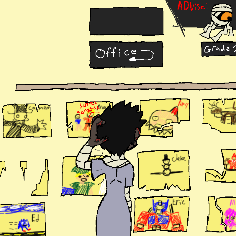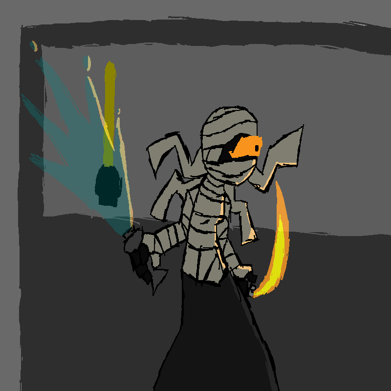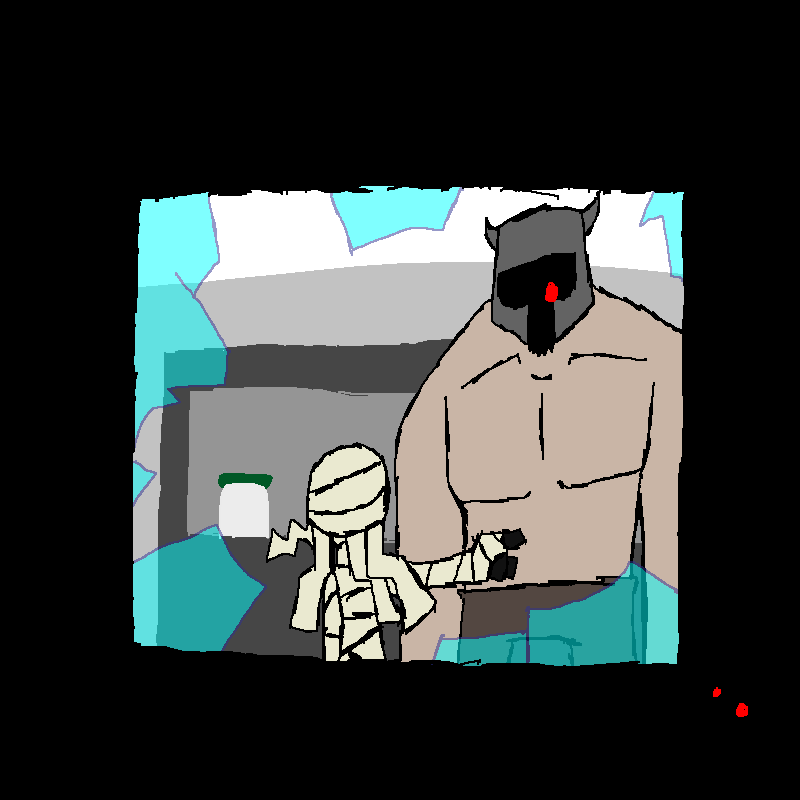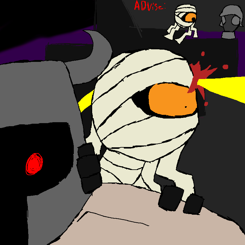 the Witch looks at her shoulder. the bullet passed straight through, it seems not to have hit the bone. her head wound is much more serious, though. likely a concussion. she would use her bandages to stop the bleeding, but then everyone could see her tater-tots.