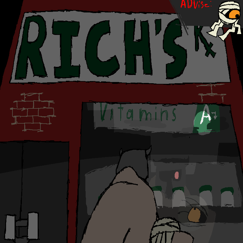 "look at that..." the Witch sits up and looks at the front of the store. the doors and windows remain unbroken, and the shelves are fully stocked.