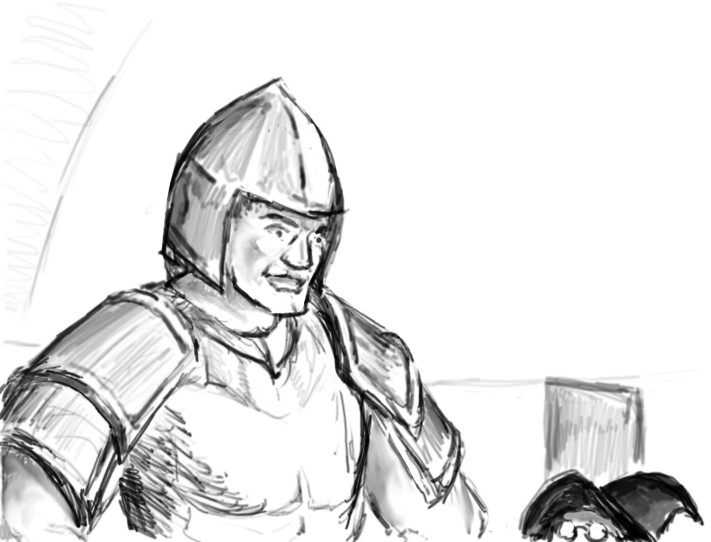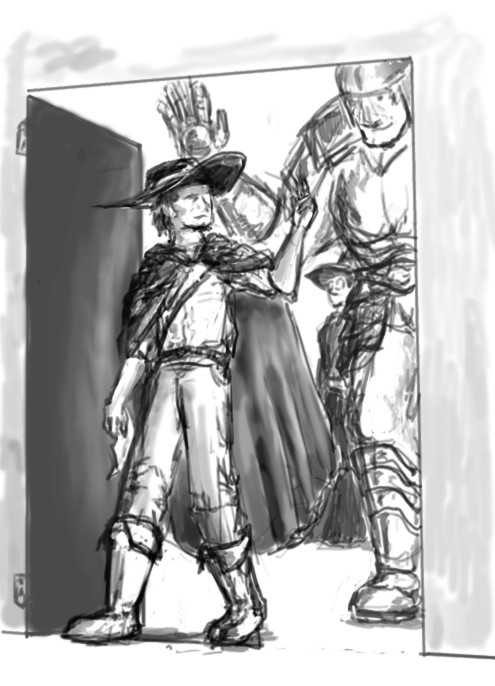 "Ah, there he is. Glad you're still- Oh. Well, I s'pose I won't be needin' a description then. Got some other questions if ya don't mind."