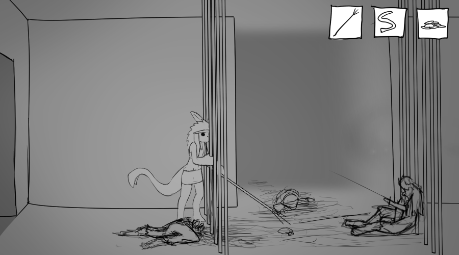 Moving it closer is a bit of work, what with your spear and arm awkwardly wedged through the bars, but you just.