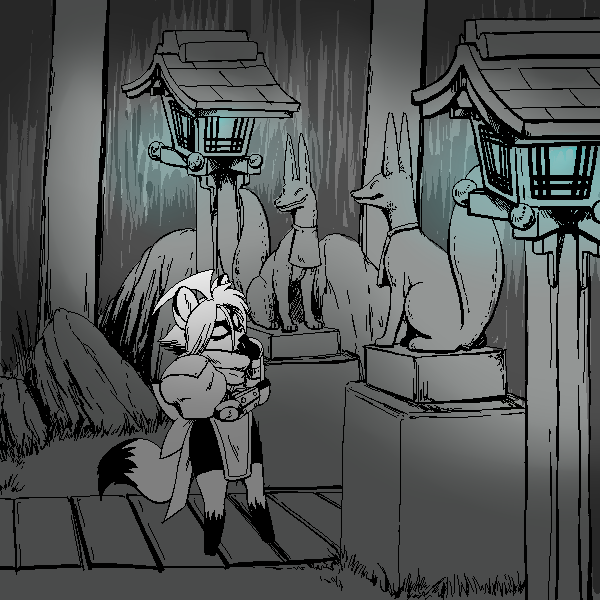 I grab one of the MAGIC LEAVES off my night stand place it on my head. With a :pomf: I transform into my human disguise, Head Master says I shouldn't let people know about the whole tanuki thing just yet. I slip down the exit and grab a piece of toast on my way through the kitchen, and then hurry out the door toward the dojo.