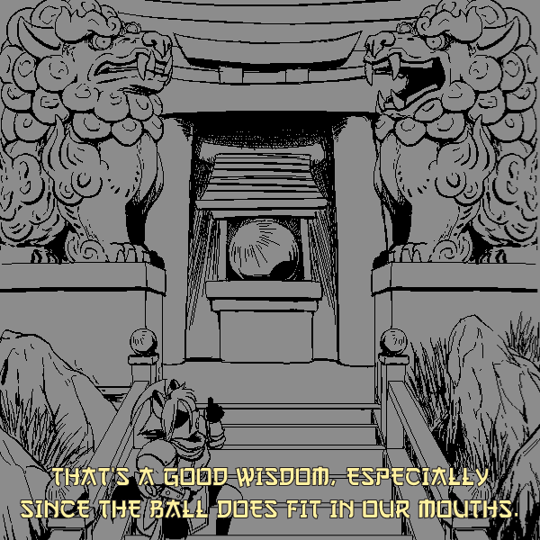 "I don't got any desire to kick around this dumb island my whole life, living in a cave in the bowels of this hell hole. Ya know, I can just getcha some leaves from the supply closet. Also, you currently have my Hoshi no Tama, which means I'm kinda disarmed at the mo' so I can't really try much anyway. Can I get that back, by the way?"