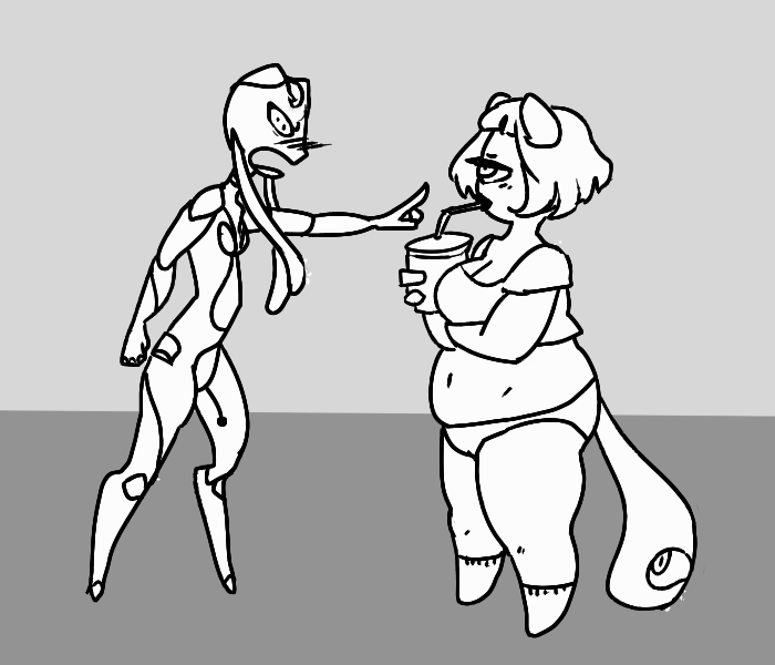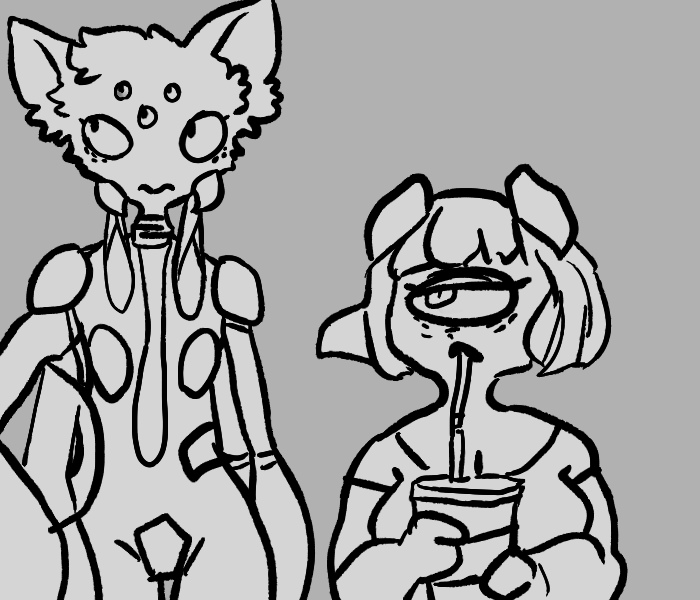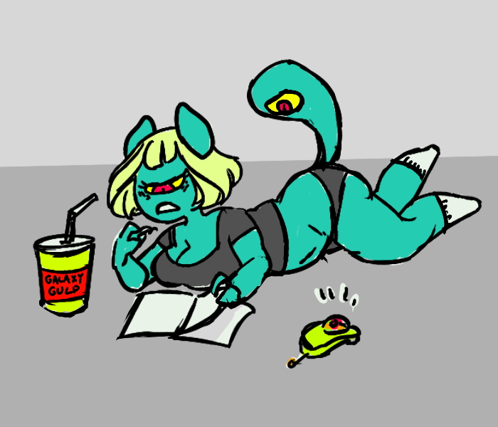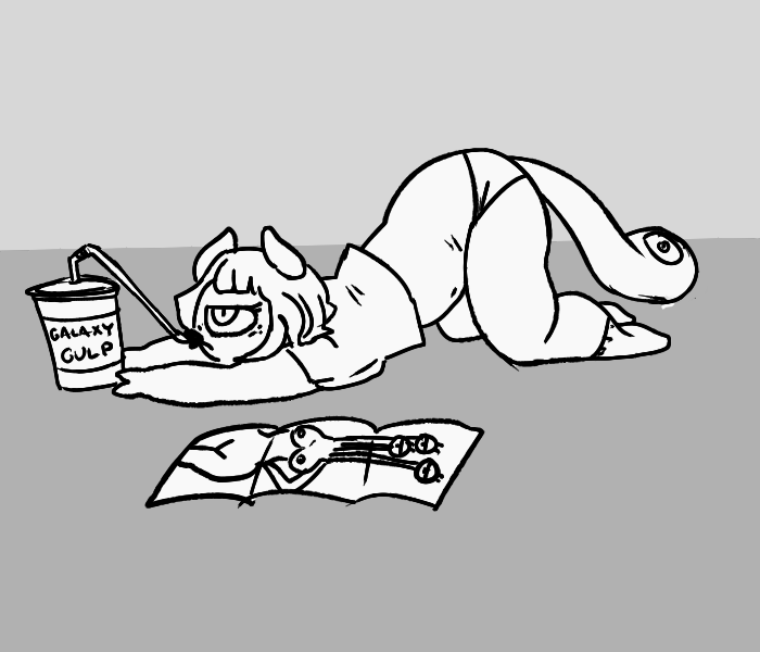 "So, uh, Skerz." I sidle up next to the youngest member of our team, pausing every now and then to take a nice big swig of a my Galaxy Gulp. "Since we're gonna be hangin' around here instead of goin' on duty, I was thinkin' -"