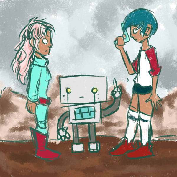 "Fuckin' hell, Tinny, I'm not going through my entire backstory in one go. Can we get a move on?"
