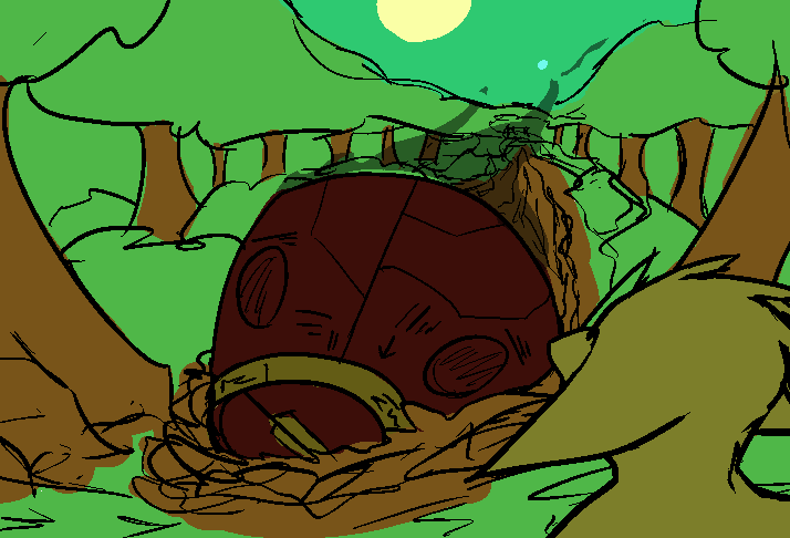 A falming metal capsle smashes into the ground at a great speed, sending soil and trees flying. It digs into the ground until it lays dormant and smoking. For a few minutes the surroundings lay quiet until a creature native to this planet stumbles through the brush into view.