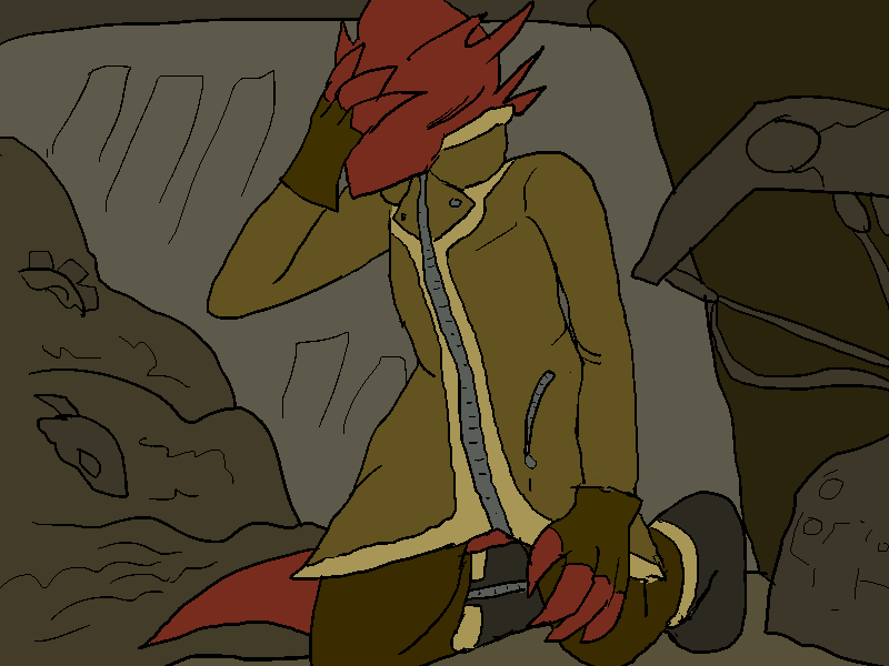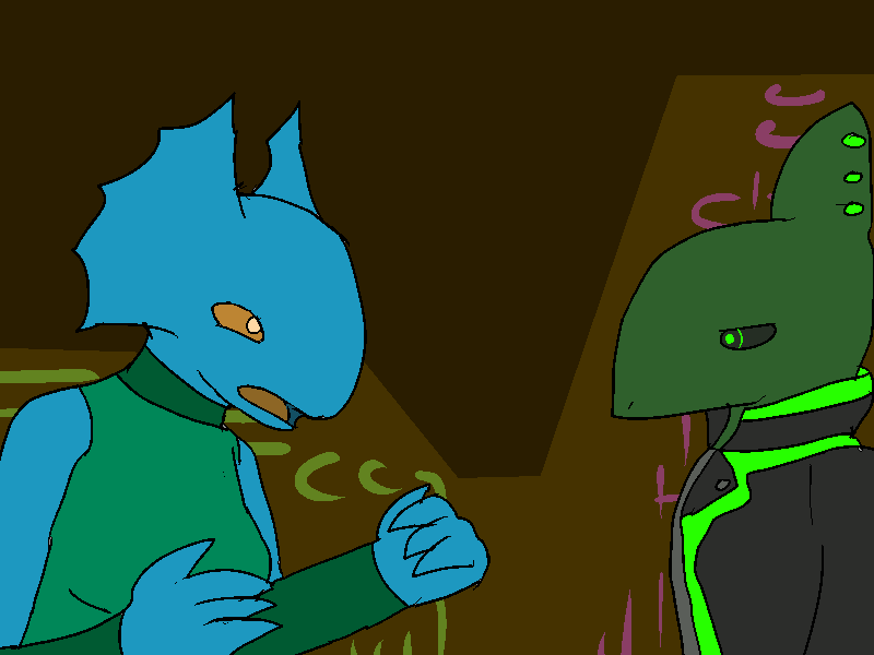 I leave the alley. Liz looks past me, then blinks, and stares.
