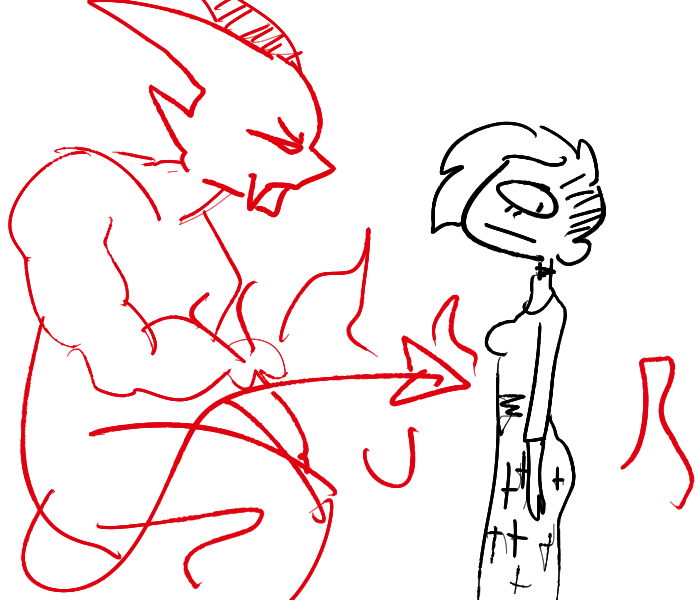 shit. i must have fallen asleep. my tail, horns, and pokey thing are gone - i guess the demons decided that if i was gonna be a drowsy little prick i wasn't allowed to be the Queen of Hell anymore
