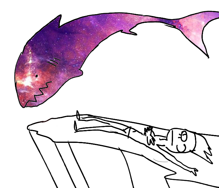 above me, The Space Shark swims in idle circles as it has, does, and will for all of eternity. its voice washes over me like the breaking waves of a warm galactic sea.