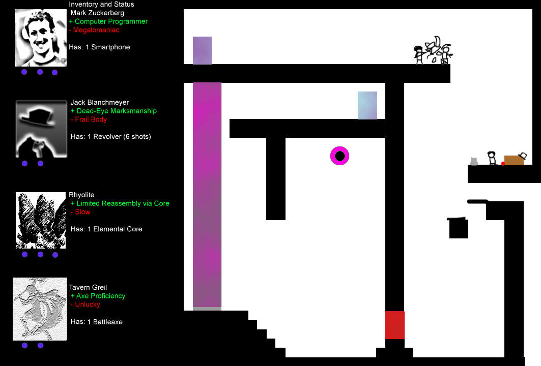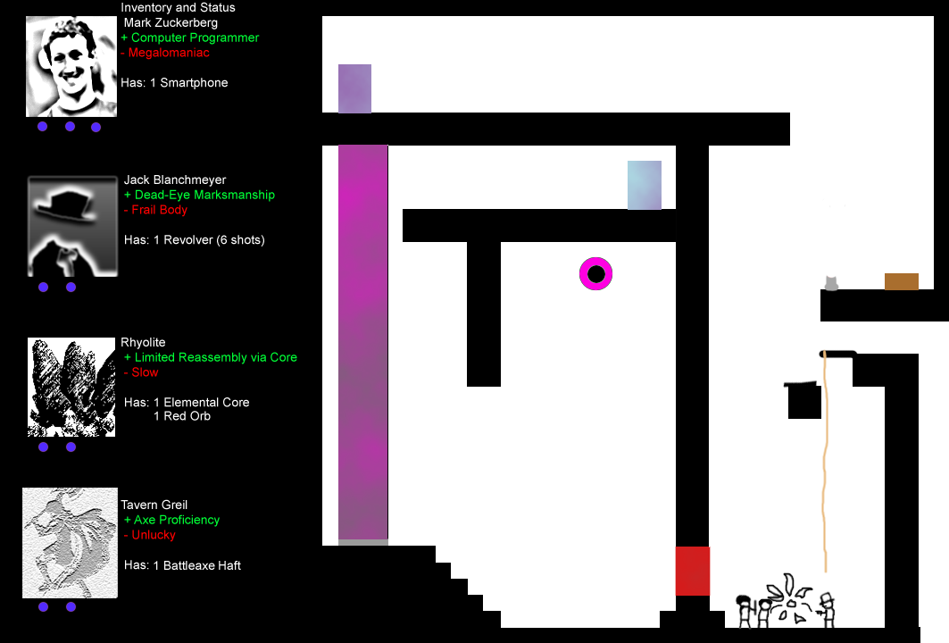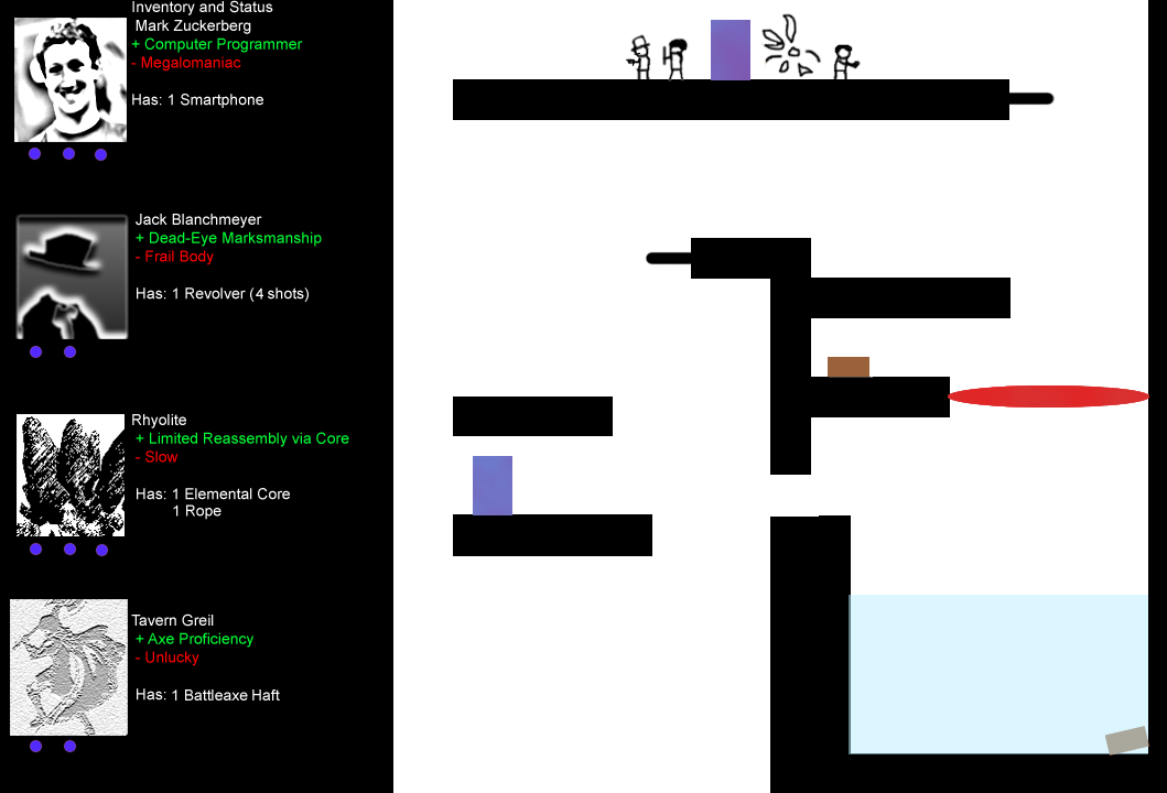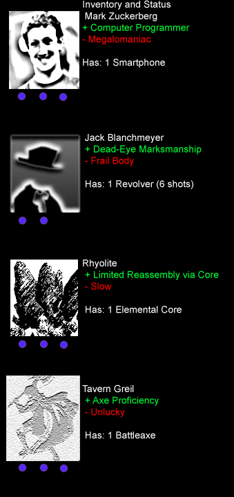 Lastly is Tavern Greil, a wandering warrior named after his favorite location. Tavern had to change his name, you see, back when he was mistaken for a wanted criminal. He carries with him a large axe, and has the bulk and skill to use it.