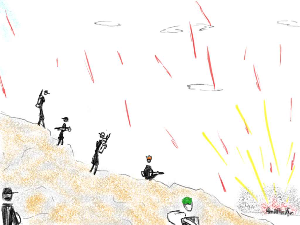 >"Ah, hello hello? Hammerhead comm Rad calling Hammerhead riflemen Six through Fifteen, ah, what's it like over there?"